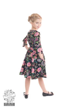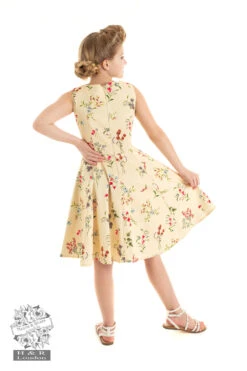 Girls 50s Ditsy Rose Floral Summer Dress in blue: