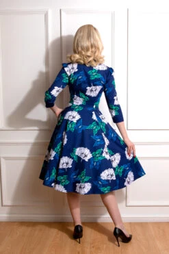 The 50’s Pink Maureen Floral Swing Dress is as beautiful as it is elegant. Â Pink Oriental lillies with long green stems float abound on the dress’s white background creating one gorgeous floral dress!