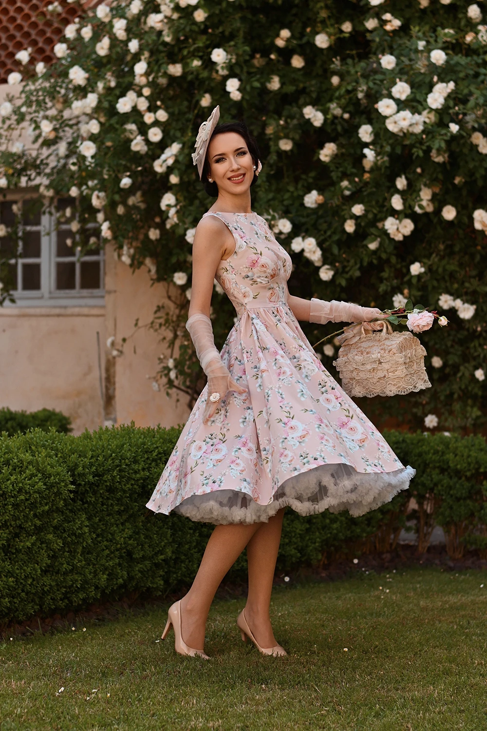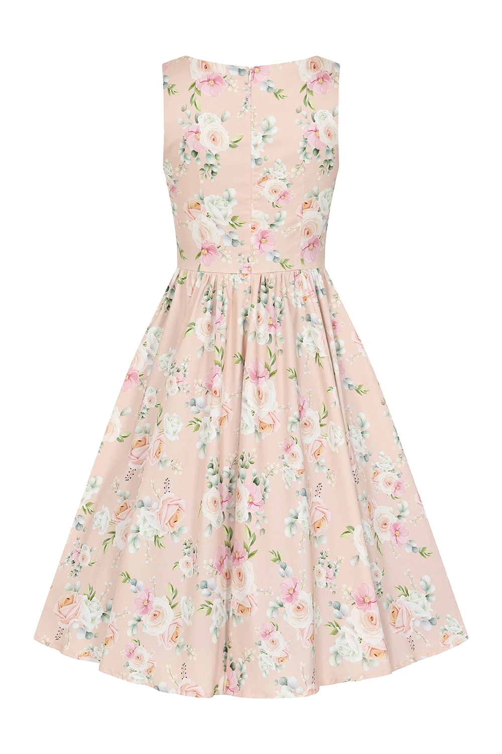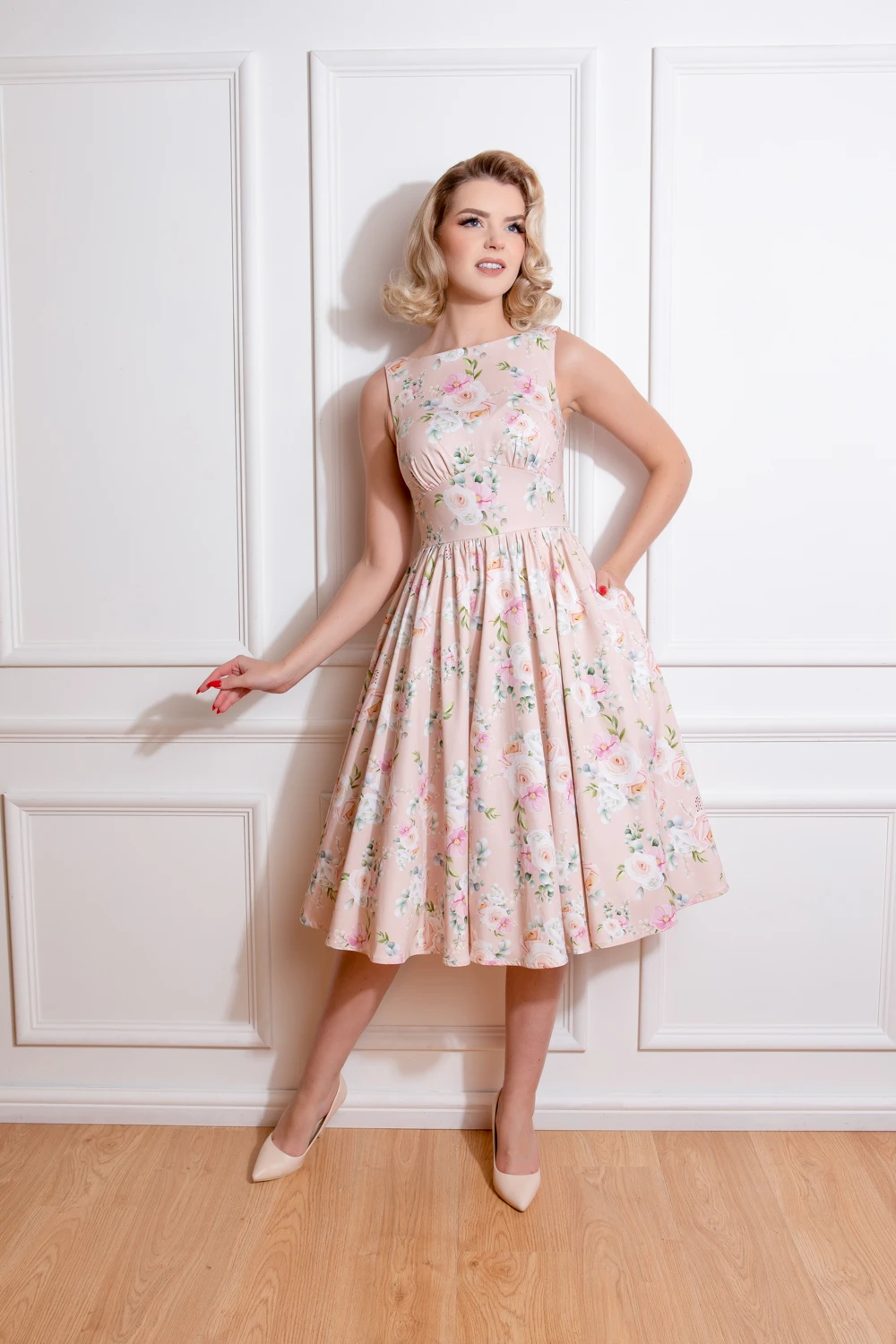 Welcoming our newest member to the spring summer collection, is our Amanda Floral Swing Dress. This style is classic and simple, making it really easy to wear this summer. The soft base colour works all day long with the gentle floral print placed neatly on top. The classic 50’s boat neckline is really flattering for all and sits perfectly with the gathered full swing skirt. This style can be dressed up or down by adding your favourite accessories. Super sweet, this new swing dress will have you looking the part this spring summer, easily worn with flats or heels to complete the look.