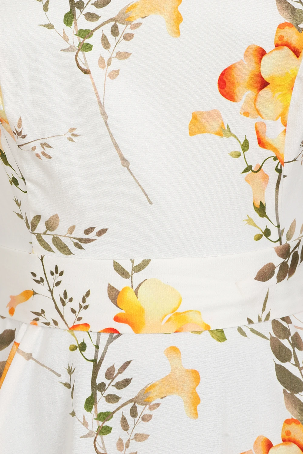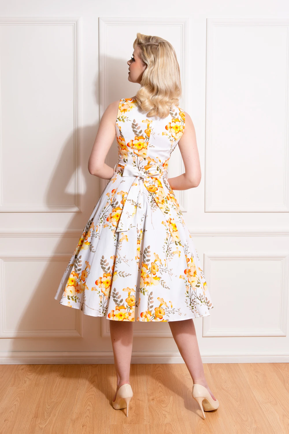 Introducing our brand new spring summer style, our Brooke Floral Swing Dress. Bursting with beautiful orange florals, decorated with leaves and petals, this style is for the movers and shakers. The full swing skirt is perfect for dancing all summer long. While the tie belt adds that’s sweet feminine touch. We haven’t forgotten those super handy hidden side pockets, designed to add extra ease to your day. To complete this look just add flats or heels and you’re all set!