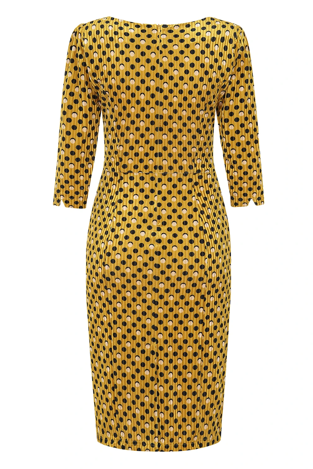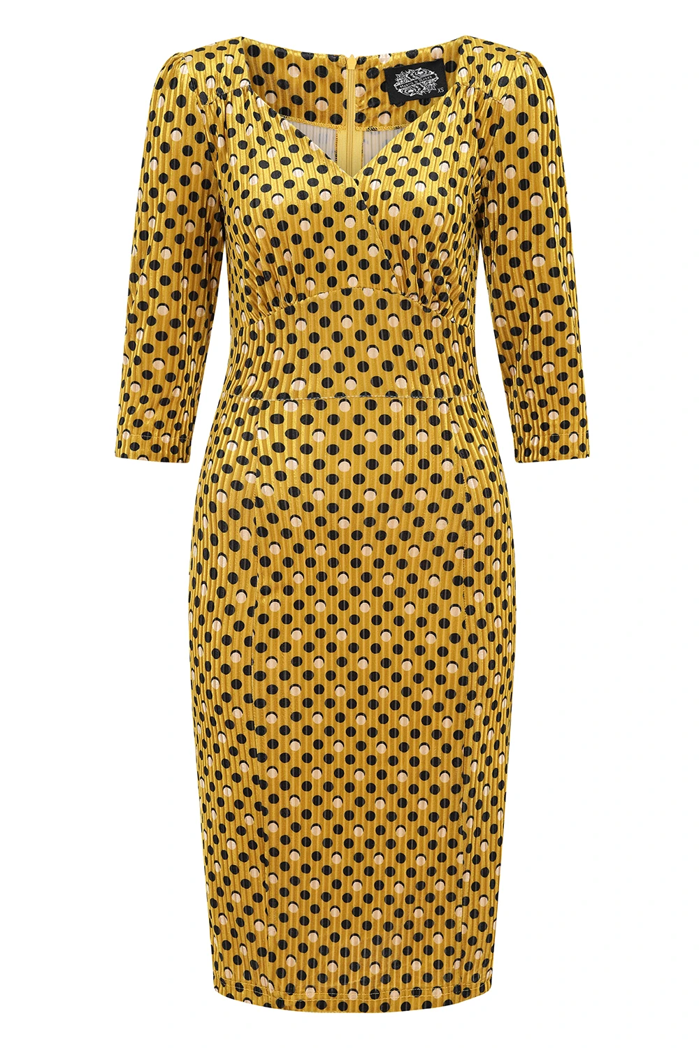 Let us introduce you to our brand new style, our Cora Polka Dot polka dot wiggle dress. Its golden velvet colour gives warmth this season, while the polka dots scattered all over the dress add that energetic lift. The velvet fabric is soft and stretchy and has a gorgeous ribbing throughout. The light catches this piece beautifully, making it a great piece for dancing! The gathered detailing adds that extra feminine touch while the hidden back zip and back vent make this piece super comfortable and easy to wear. Style this dress up or down with your favourite accessories and you’re ready to go!