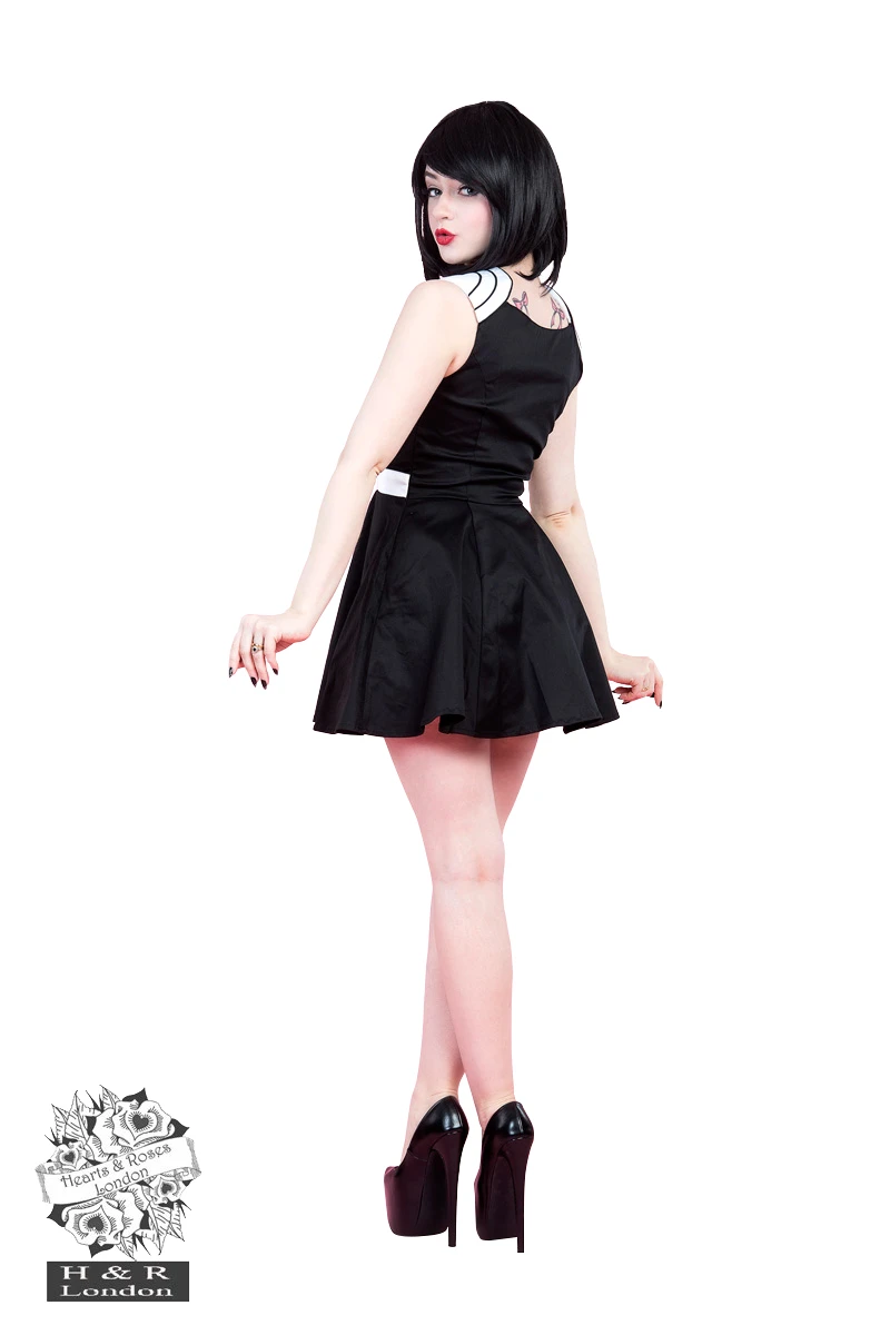 Why not flaunt your rockabilly pinup in H&R Empire Line Day Dress. This style is inspired by the 50鈥檚 retro vintage, flaunting a lovely figure hugging cut. The fitted bodice flares into a mini skirt and the design features a black stretchy cotton fabric with a white trim around the shoulders and a white trim around the waistband. This style will be a perfect addition to your vintage collection.