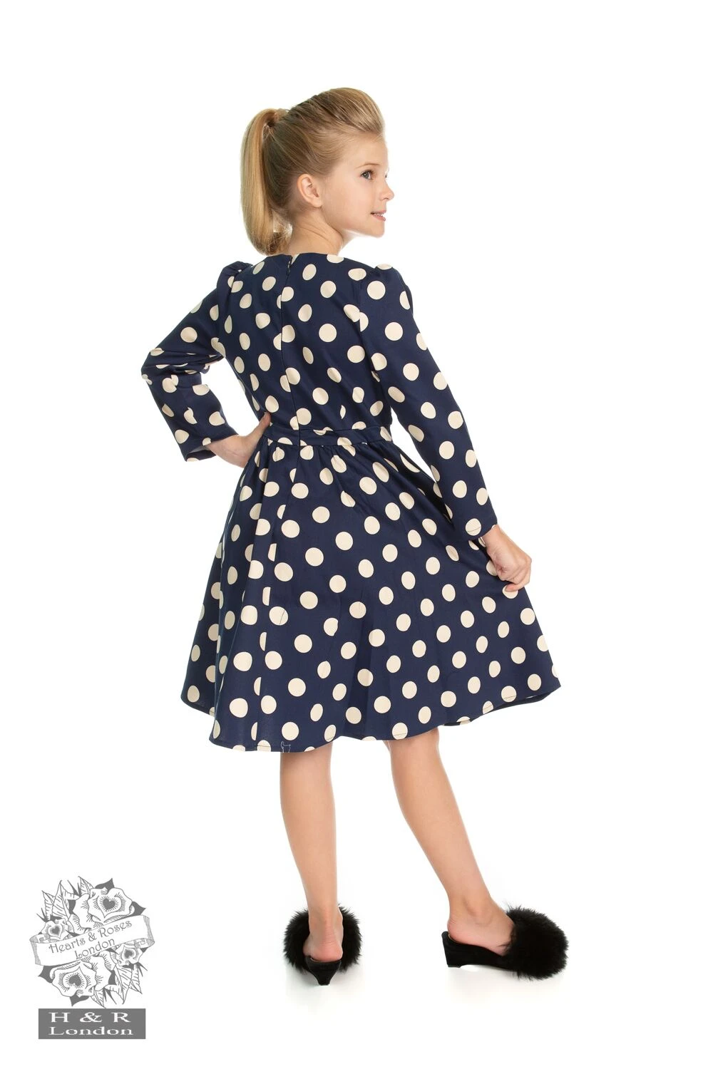 A must have for all vintage polka dot lovers. Milana has arrived and we are already in love with her. We know you will fall in love with her too. Milana is an elegant polka dot style, featuring a print of cream polka dots set on a dark navy cotton fabric. Designed with bold polka dots she flaunts a simple boat neckline and 3/4 sleeves. Milana will have you looking beautiful while feeling comfortable. A flowy and fun swing dress!