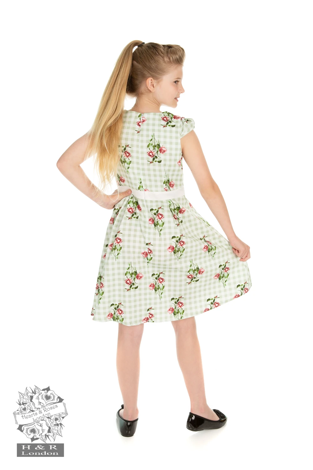 The Summer Rose swing dress is a new style which will melt your heart. Its gathered cap sleeves adds a sweet touch to this kids style. The waist pleats all around the dress allow for full movement so your little one can play with no restrictions. We have also added a rounded collar in white to match the stretchy waistband, topped with a cute bow at the neckline in the perfect summer print.