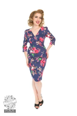 The midnight garden floral print has really done wonders for H&R, a winter design which still remains a classic seller (3469) This AW18; we present our latest edit in a gorgeous wiggle dress style. The design was fabricated on a cotton blend fabric in the shade of navy blue, with a pretty floral design in pink. The contrasting colours of navy and pink really go well together and make this print more eye-catching. To keep this dress classic, we did a V-shaped wrap neckline with gathering over the bust, accompanied with a figure-hugging silhouette, this together with the print creates the bold statement that we wanted for this dress.