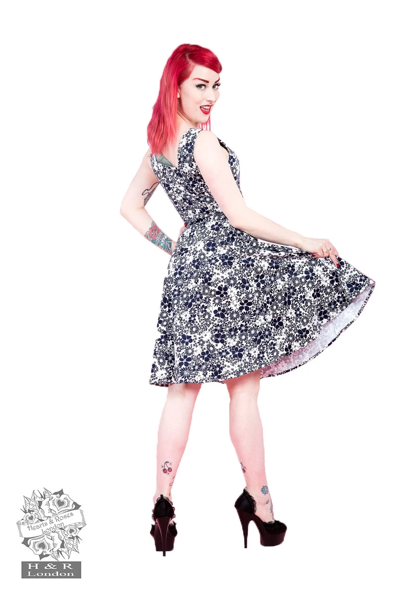 Why not flaunt our Mosaics Print Sophia Dress this summer, were sure you will have heads turning in this pretty print of Navy Blue & White blossom flowers. Flaunting a sweetheart neckline, and a sleeveless dress, you鈥檙e sure to be ready for summer this year.
