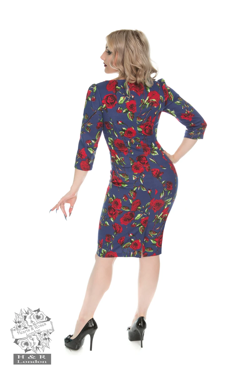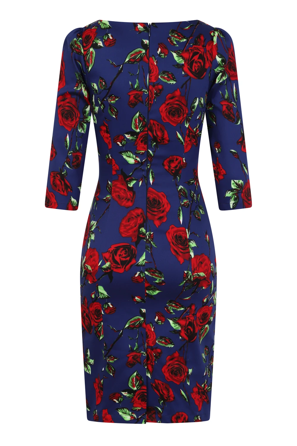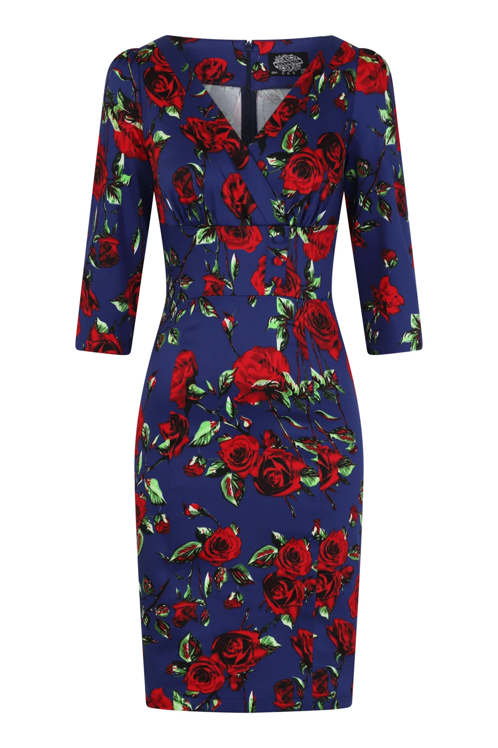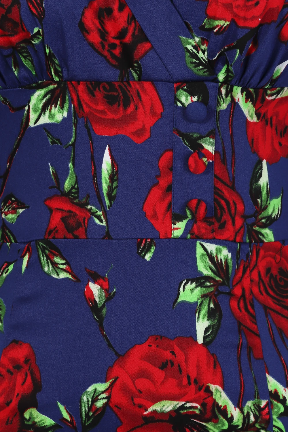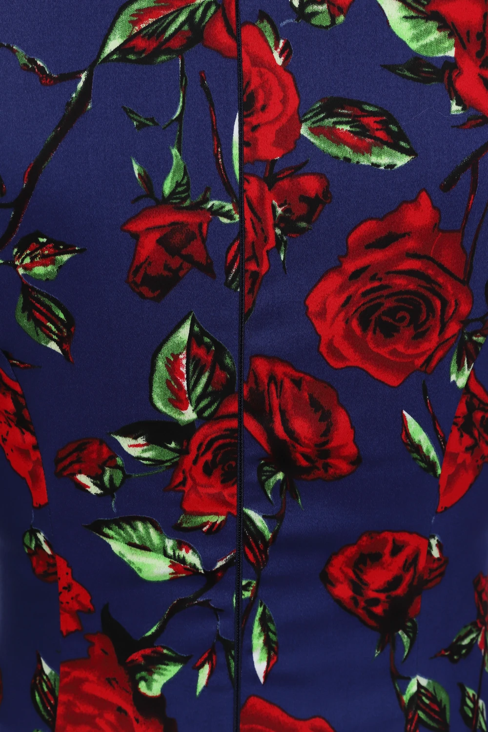 This elegant dress with a beautiful red rose and navy print gives any wardrobe that well deserved lift. With its wrap top, wide waistband and fitted body, this dress is great for all shapes and sizes. Don鈥檛 miss out on this enchanting piece this season by adding it to your winter wardrobe today!