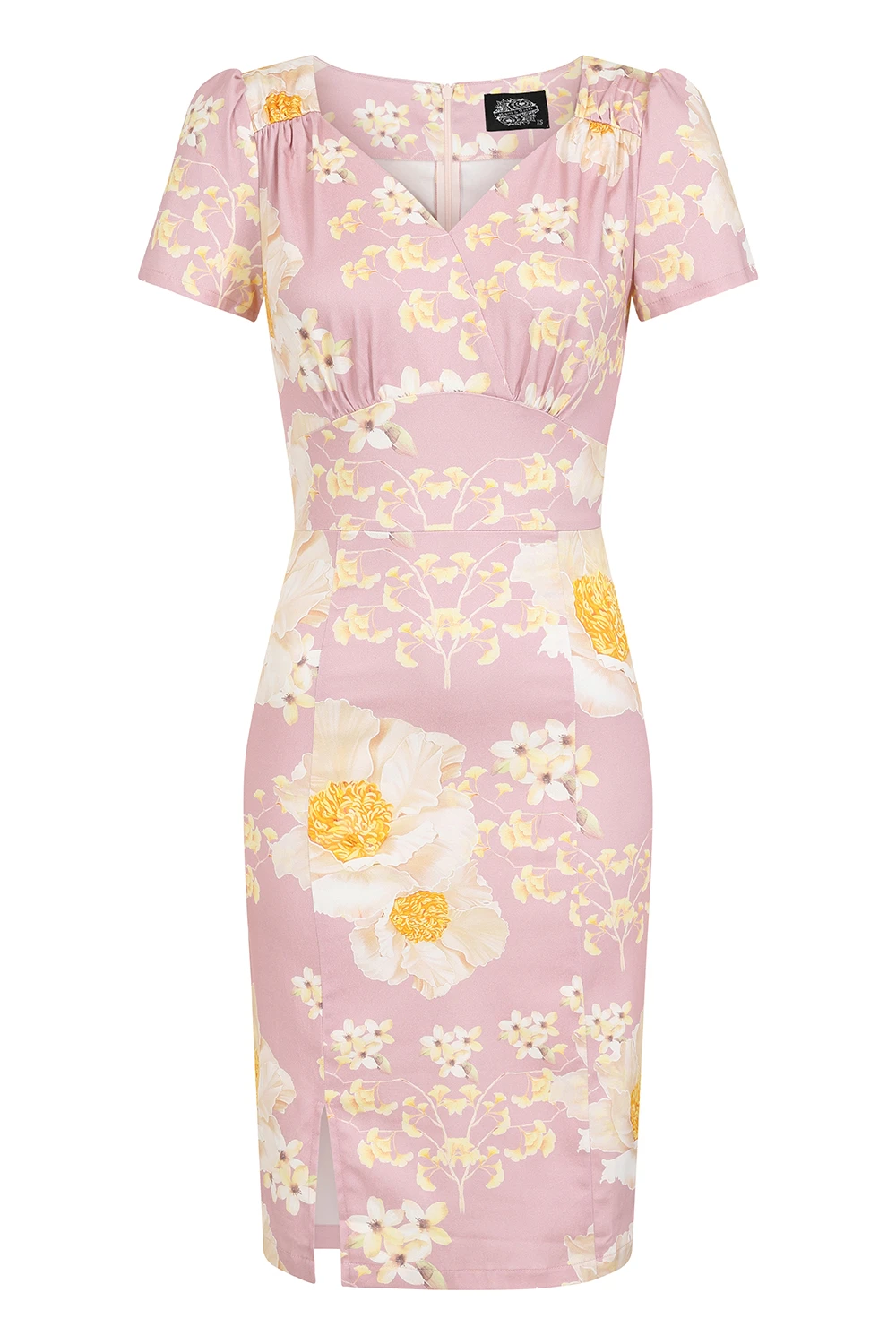 Our new Remi Floral Wiggle Dress is a breath of fresh air this spring summer season. Its stand out floral design is in full bloom in its pink, cream, yellow and purple tones. The gathered yoke seams compliment the floral design with its feminine charm. While the short sleeves and shaped waistband add that extra flare to the fitted piece. The front slit is not only flattering, it makes this piece extra comfortable to wear. Whether it’s a picnic in the park or a summer soiree, this piece will have you looking the bell of the ball.