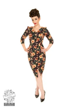 Our new Selena Floral Wiggle Dress is a true retro number, fit for any vintage lover’s wardrobe. Designed to incorporate your favourite vintage style throughout the winter months, this marron floral print has a beautiful warm tone which will keep you cosy and stylish when you need it most. Not forgetting our famous stand out floral prints, this piece stays true to our signature retro style. The front decorative buttons add another depth to the design while the cleverly placed front vent adds extra ease to make this style comfortable without compromising on the overall look. Grab your favourite bag and you are set to go!