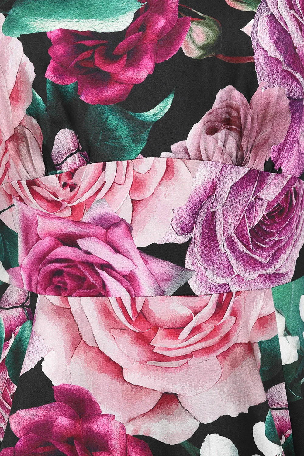 Pretty in purple and pinks, our new Sydney Floral Swing Dress will make you stand out from the crowd with its beautiful large scale floral print scattered all over the swing style.This vintage-style print features beautiful pinks, purples, greens, and cream coloured blooms all over the black print base. Dark green leaves enhance the beauty of the different shades of pink and purple. The fantastically loud print sits perfectly on the classic 50s swing shape. Designed with a fitted bodice which leads to a full swing skirt, this shape is easy to wear and super flattering. We have added our hidden side pockets and the ¾ length sleeve adds a feminine flare. This style can be worn with or without accessories, the choice is yours!