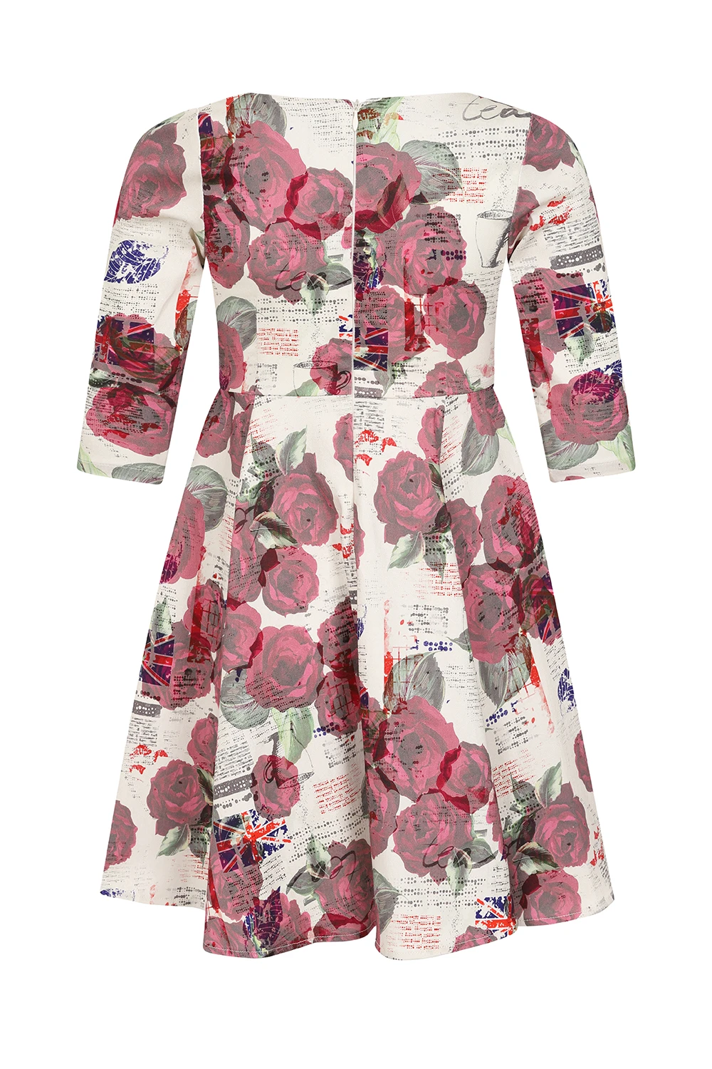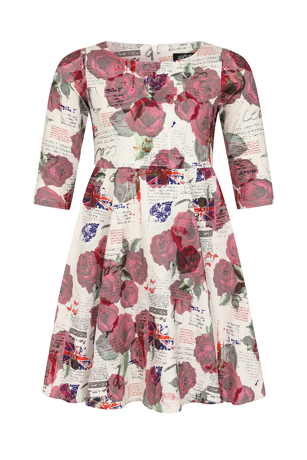 Introducing our Tilly Tea Party Swing Dress, a retro number for an afternoon out or a stroll in the park. The playful print sets the tone right for an afternoon adventure, with its deep red roses and fun English tea party print, this style is perfect for playing and having fun. We have designed it with our classic and flattering boat neckline and transitional ¾ length sleeves. The 50s shape suits all with its fitted bodice and full swing skirt. The hidden side seam pockets can be a life saver if you don’t want to carry around an unnecessary bag all day! Just pair with comfortable shoes and you are ready to go!
