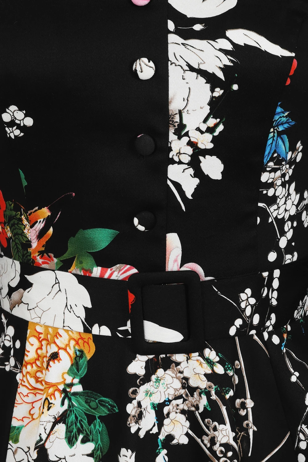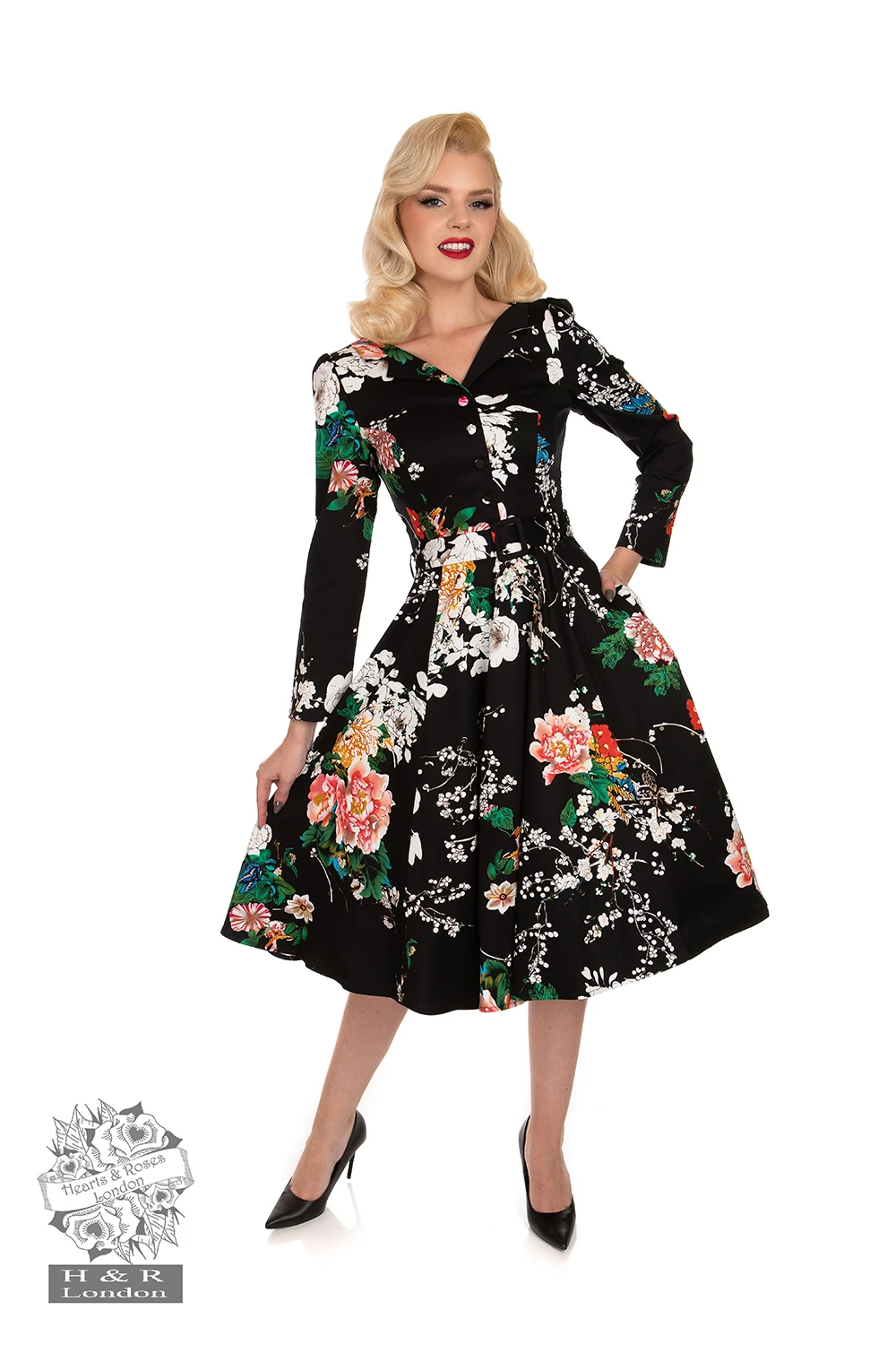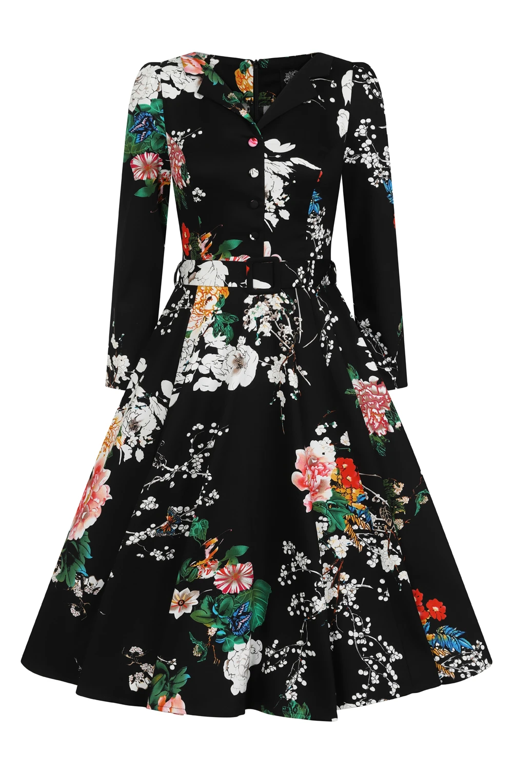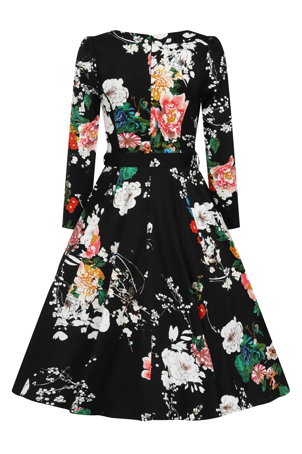 This is the perfect winter floral dress where the stark contrast between black and white is beautifully expressed to show the how the simple colours complement each other so well. The light sprinkle of floral colours brings this dress to life and makes it a graceful piece which embraces a personality of class, sophistication and beauty.
